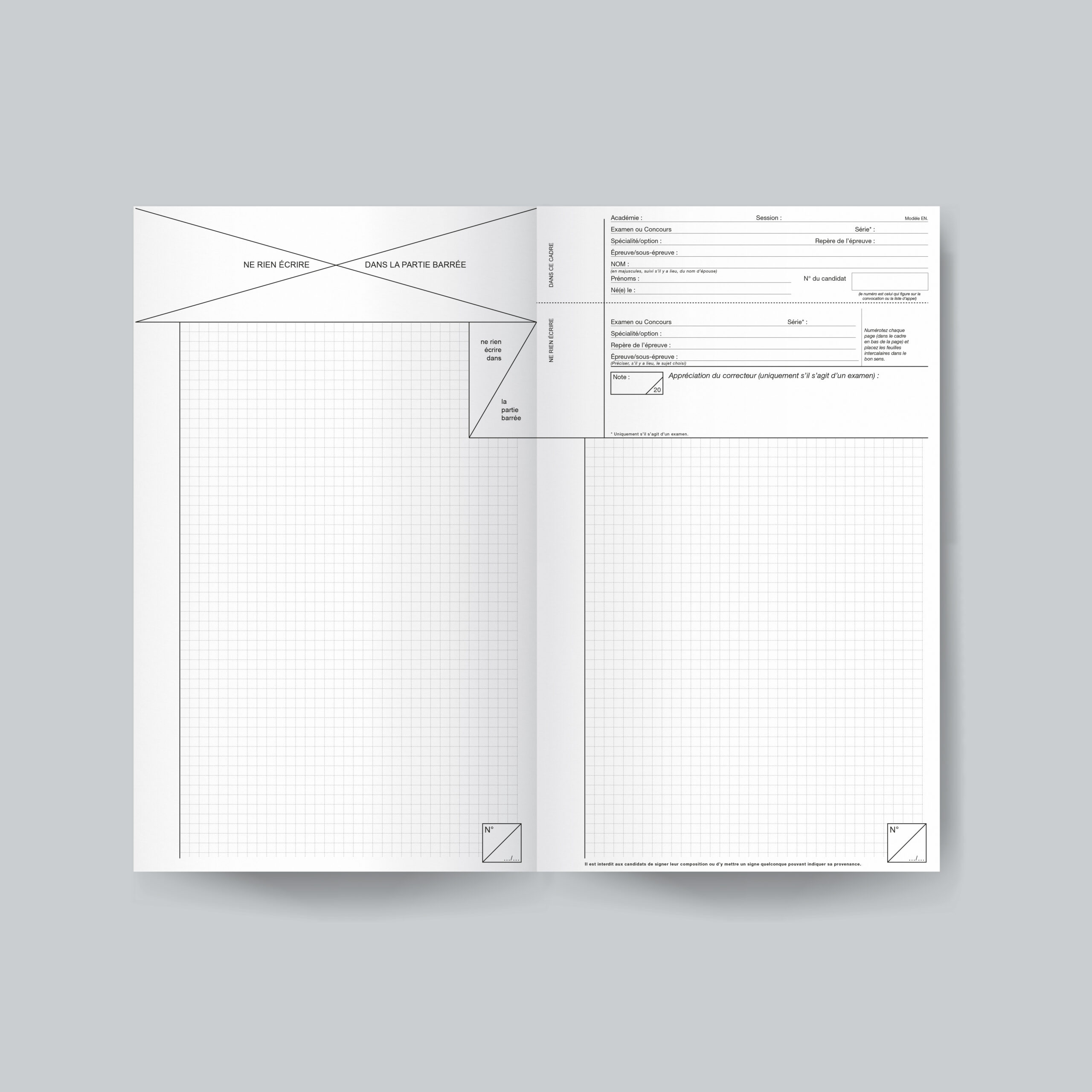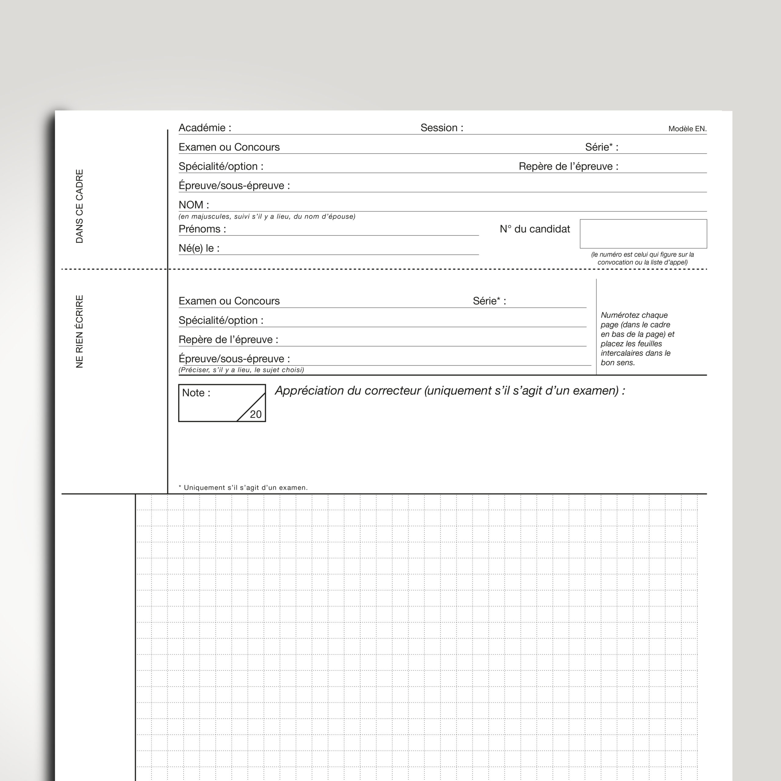 cadre réservé à l’administration, mention « Ne rien écrire dans la partie barrée » - Mise en page standardisée facilitant la correction